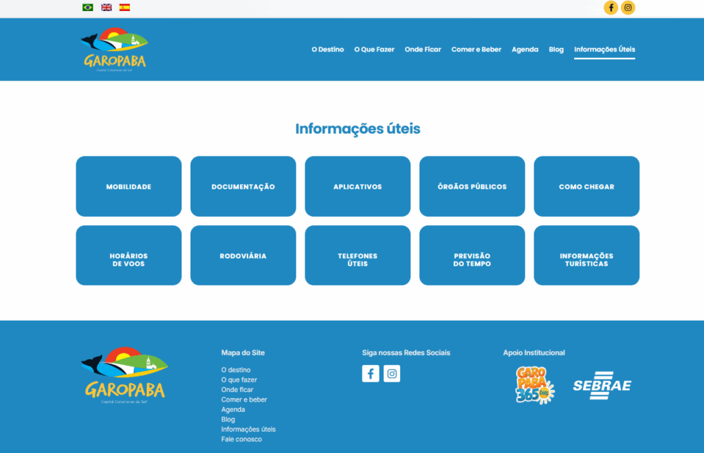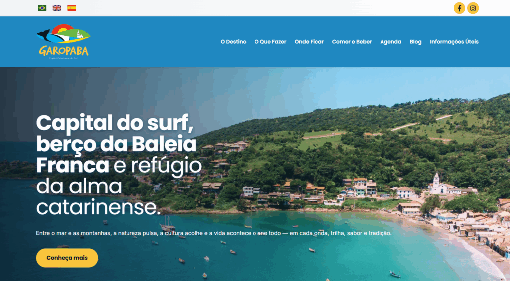 The website was built with a light and organized layout, capable of conveying the welcoming and natural atmosphere of Garopaba. The responsive design ensures good performance on mobile phones, tablets, and computers, considering that a large part of travel planning takes place via mobile phone.