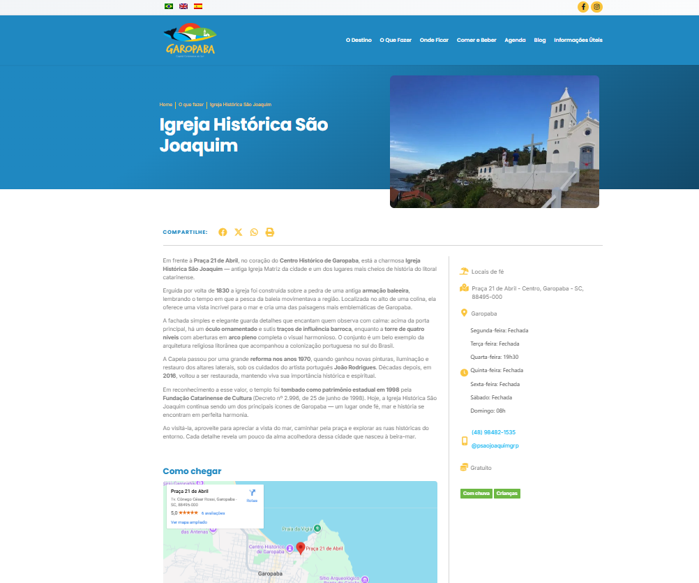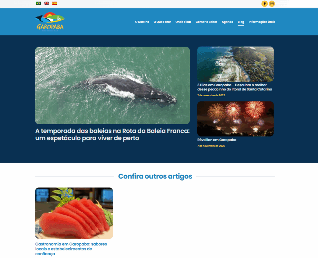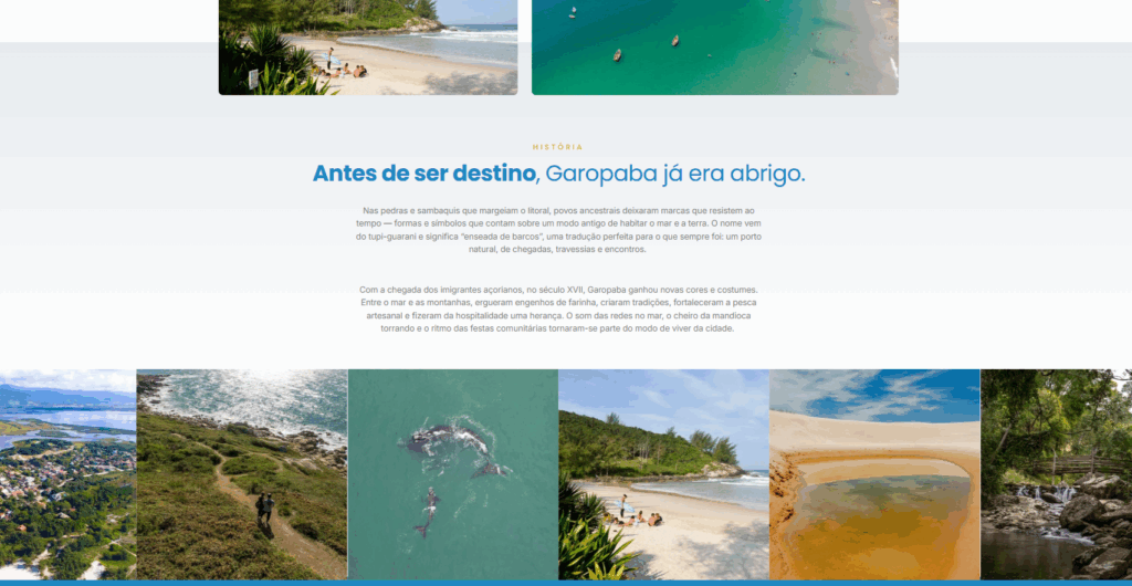 The portal's texts have been updated and adapted to reflect the uniqueness of the municipality. The narrative highlights its beaches, local culture, traditions, gastronomy, and history, reinforcing Garopaba's positioning as a destination that combines preserved nature and identity.